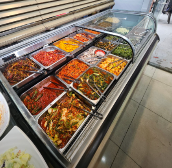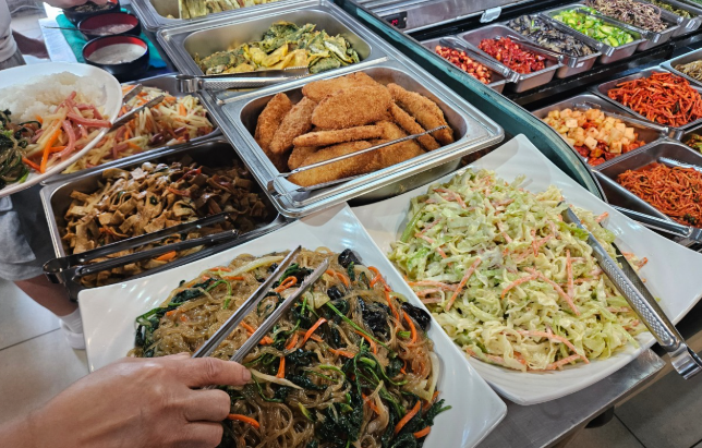 입장하면 먼저 계산을 한 뒤, 반찬 코너에서 식판에 원하는 반찬을 담는 방식으로 운영됩니다.