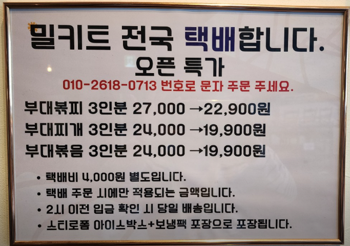 단순히 햄과 소시지를 넣어 만든 부대찌개가 아니라, 직접 만든 수제 햄과 수제 부침개, 볶음찌개까지 한 자리에서 즐길 수 있는 제대로 된 부대찌개 전문점이었습니다.