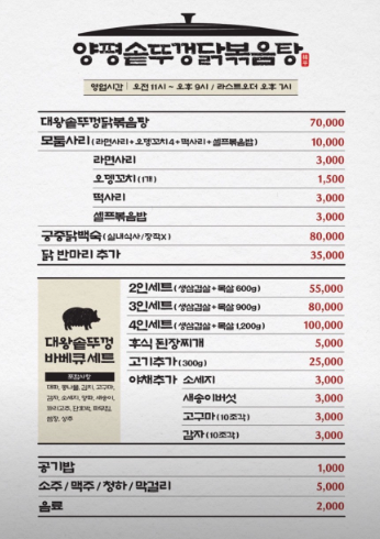 - 상호명: 양평솥뚜껑닭볶음탕