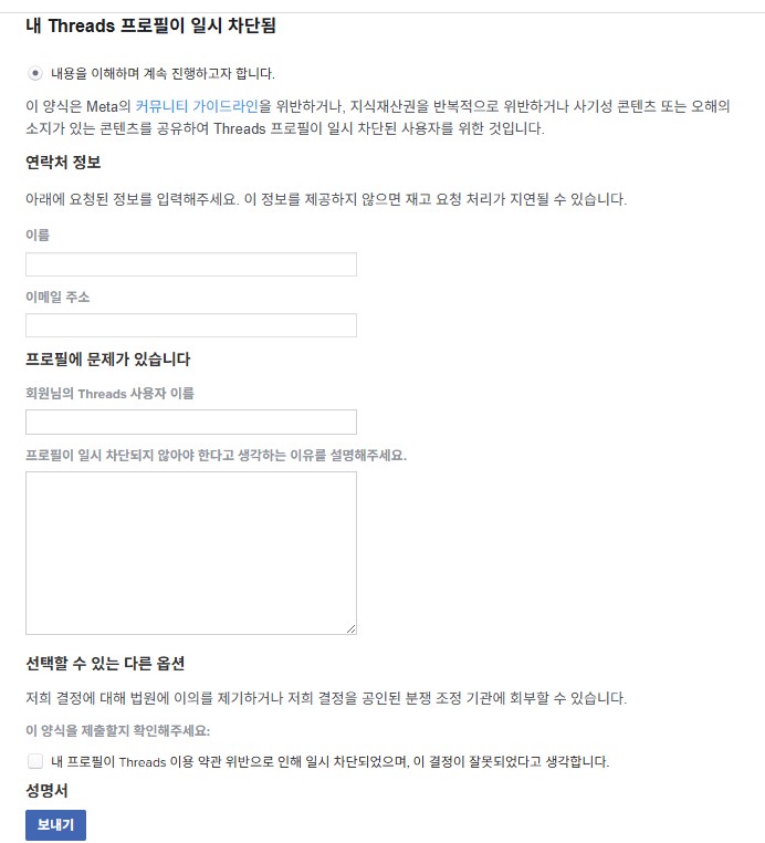 스레드는 이용정책에 따라 아래 항목에 해당하면 계정 정지, 기능 제한, 페널티가 발생할 수 있습니다.