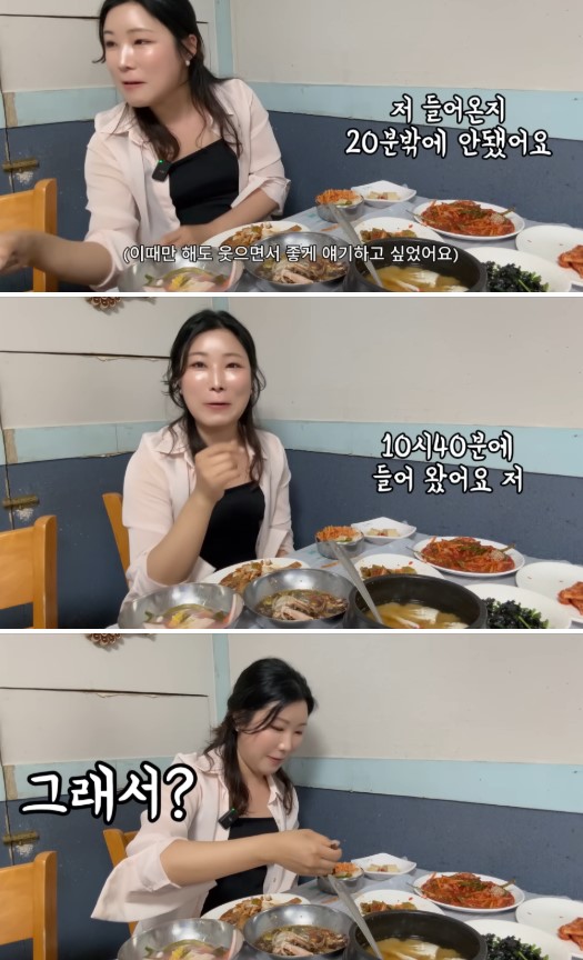 식사는 조용히 진행되었지만, 약 20분 후 식당 주인이 큰 소리로 “얼른 먹고 나가야 한다”고 말하며 재촉했다는 것이 영상의 주요 내용입니다.