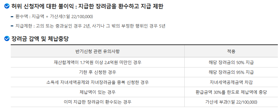 • 부정 수급 적발 시 환수 및 불이익 발생