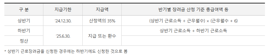 2024년 상반기분 2024년 9월 중 2024년 12월 중 지급 2025년 6~8월 정산