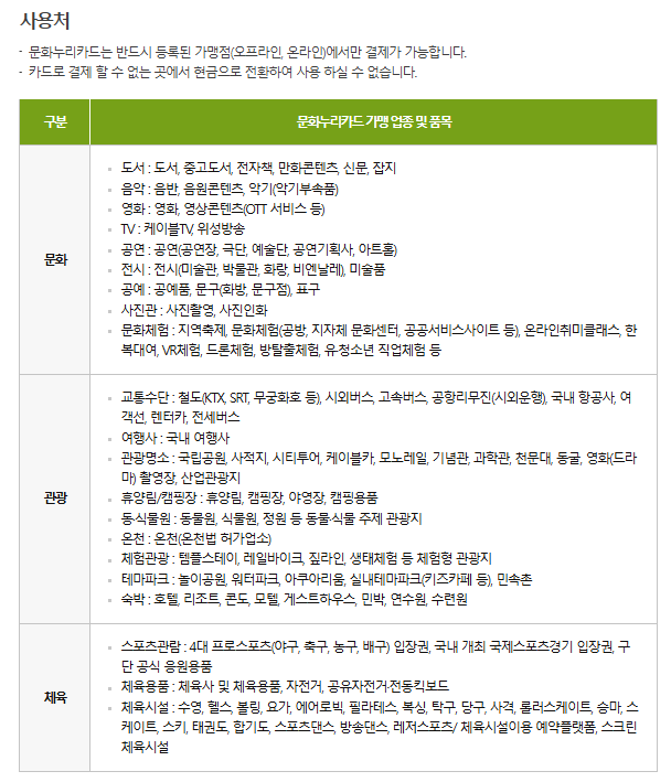 - 문화누리카드 가맹점에서만 사용 가능
